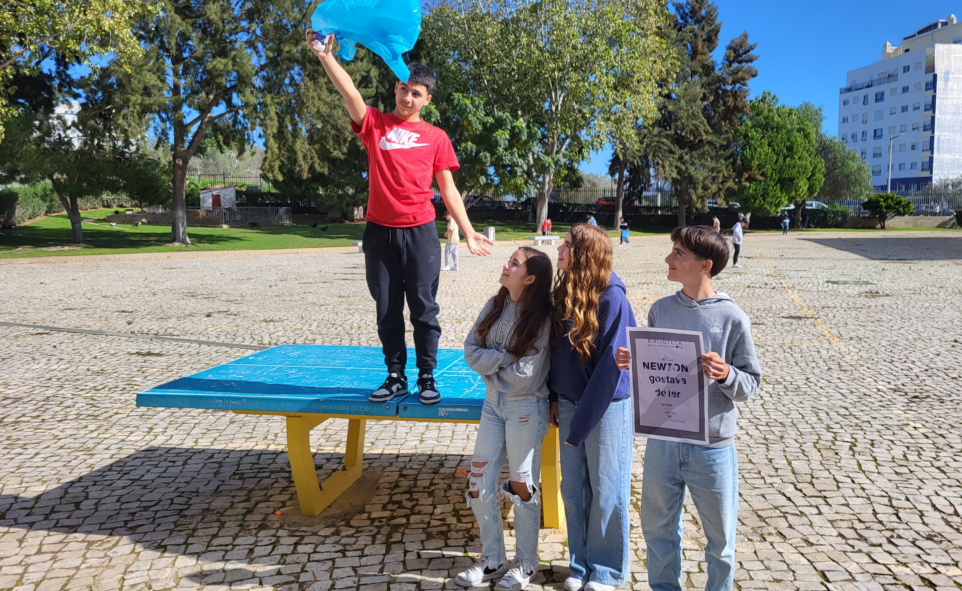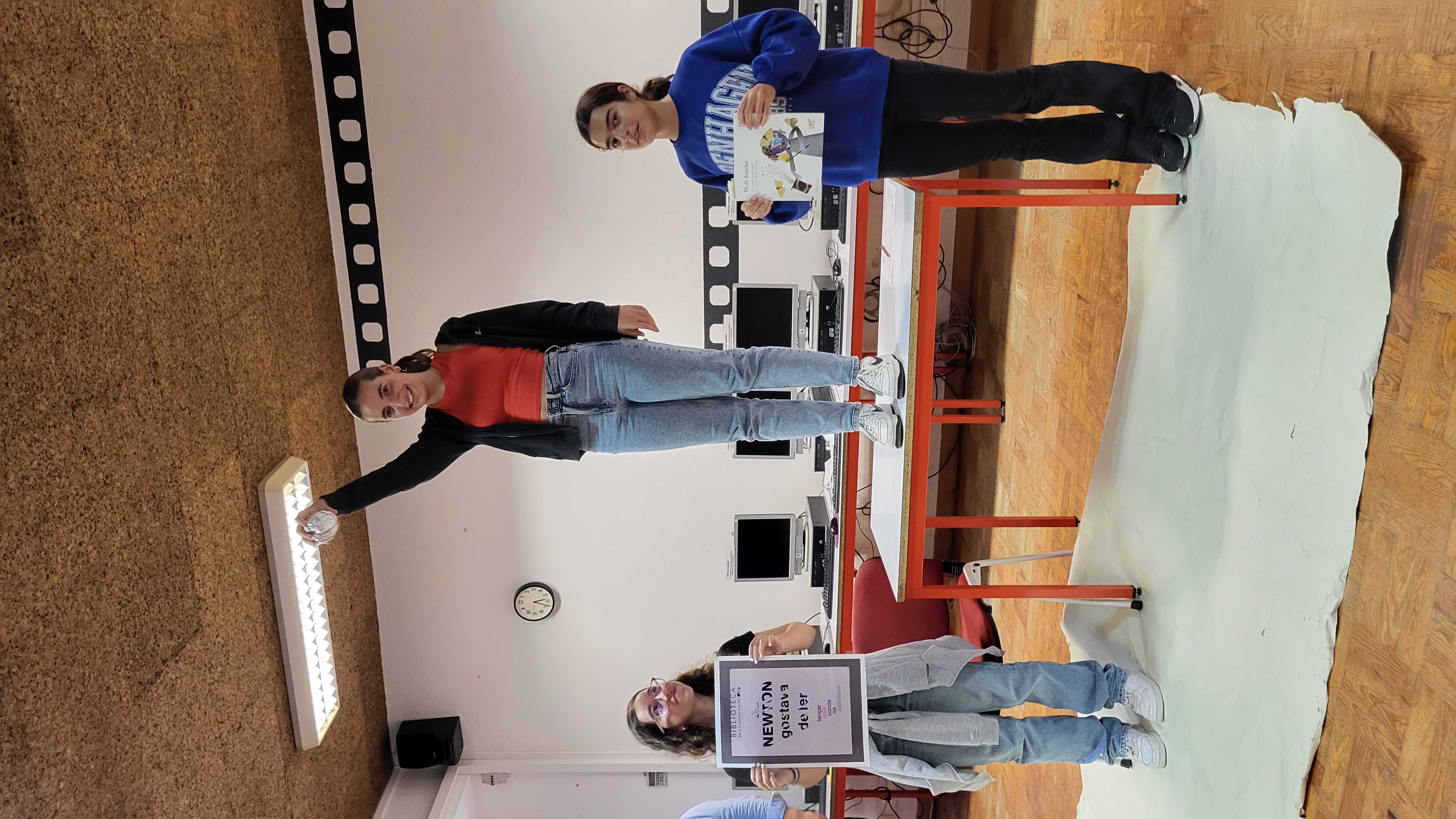 No âmbito do projeto "Newton gostava de ler", foi dinamizada uma atividade com os alunos das turmas A, B e C do 8º ano, em colaboração com a docente de Físico-Química, Sílvia Sousa e o Coordenador da Biblioteca.