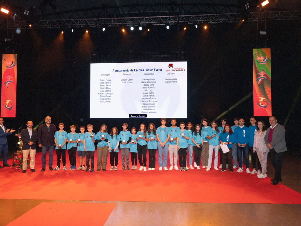 O Município de Portimão realizou, no passado dia 8 de dezembro a "Gala do Desporto Portimão 2023" – Cerimónia de Homenagem aos Campeões Portimonenses na Época Desportiva 2022/2023, no Portimão Arena, pelas 17h, onde parabenizou os seguintes Alunos e Professores do Agrupamento de Escolas Júdice Fialho: